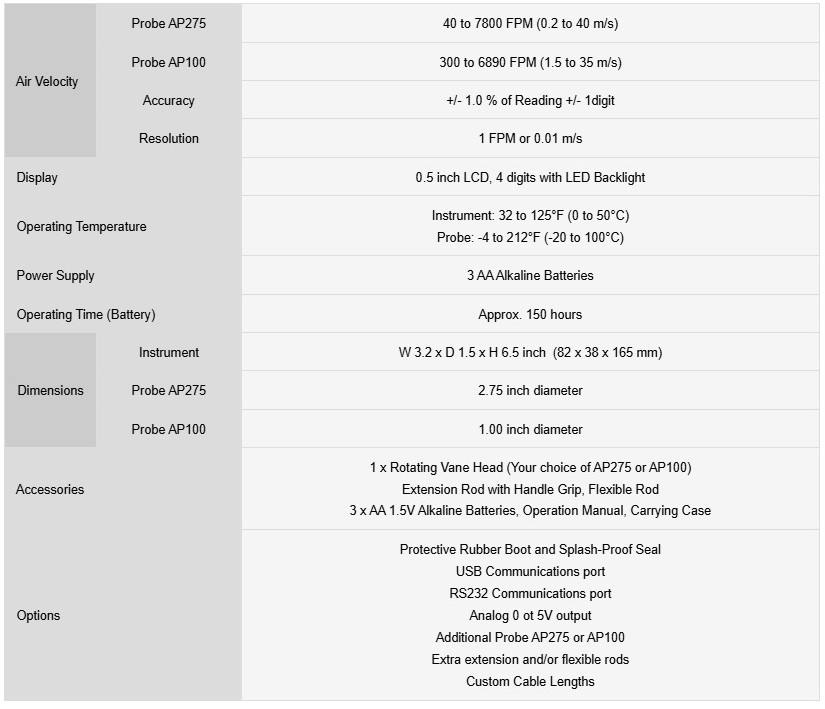 he Pacer DA400 Rotating Vane Anemometer is a high-quality instrument providing highly accurate air velocity measurements in harsh environments via a user-friendly & intuitive interface. Applications include manufacturing, laboratory, computer rooms, environmental control, flow hood monitoring and many other applications where precise air measurement is required.