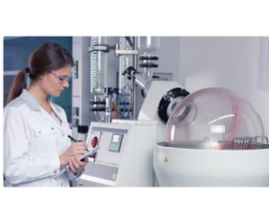 Due to the intuitive design of the Rotavapor® R-250 and its vacuum controller, users enjoy easy and safe operation. The product characterizes with excellent handling by a large and easily readable display and smooth flask handling due to the unique flask coupling. The coated glassware contributes to user safety while the spring-loaded valves protect the glass.