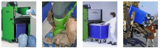 - The roller bin with the highly compacted material can be easily removed and transported.