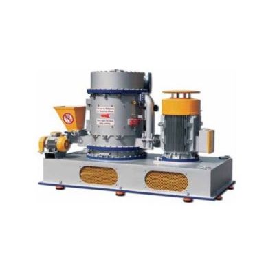 The operating principle of the mill is a rotor that is fitted with special tools. It rotates at a high peripheral speed within a solid replaceable stator. The mechanical design is conservative allowing the mill to operate safely under severe conditions and high peak loadings. The tooling on the rotor and the design of the liner of the stator accelerate the particles to very high velocities within the air eddies ensuring high energy impact between the air stream and the product. Material enters the mill at the base of the rotor and on leaving the grinding zone it enters a sifting section where the oversized particles are returned to the bottom of the grinding zone.
