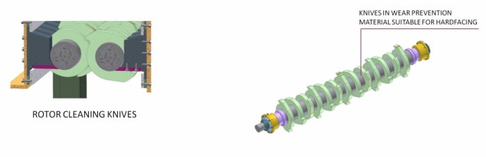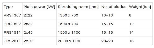 PRS  shredder has been designed  for a clean cut to every kind of waste. The cutting discs are designed according to the material to be processed and the kind of shredding, thus defining the thickness and the disc diameter over the geometry of the hooks. Equipped with rotor’s cleaning knives.