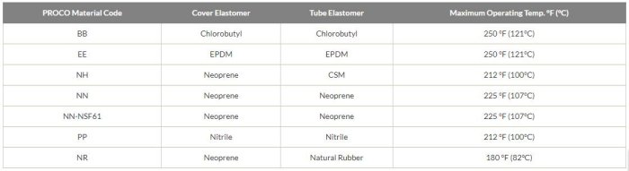 All Proco Series 700 ProFlex™ Rubber Check Valves are available in a various selection of elastomers including ANSI/NSF-61 certified product under UL Certification #MH47689. The Proco Series 700 ProFlex™ Rubber Check Valves will not freeze or deform and function solely on inlet and back pressures which will be present in each unique application.