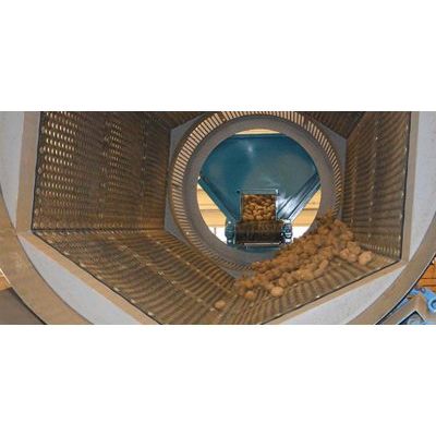 The screening surface of this rubber sieve drum consists entirely of rubber. This ensures that the product is not damaged during the rotation of the drum. Among other things, this machine can be used to remove dirt from potatoes and other tuber and root products.