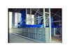 Here, we work with a modular design, i. e. a cabinet module (2.000 mm W x 2.100 mm H x 500 mm D) consists of the suction cascade, the filter hose series, the vibrating beam with the unbalance motor, inspection hatches and the connector. During the pouring-in process when a product is delivered, the dust cloud is guited via the cascade into the interior of the filter hose series. Dust and coarse particles remaind attached to the walls of the hose series. The pure air is then fed outside through the connector via fans. After unloading is finished, the extraction is switched off. The vibrating mechanism starts up and the product falls from the filter hose walls back into the loading gutter.