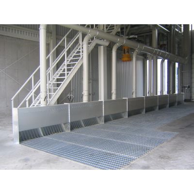 Our powerful solution for low emissions when delivering dust-intensive bulk materials. RUBERG Gutter dust extraction plants are available as a vibrating hose extraction wall, a jet hose extraction wall or as an extraction wall with a decentralised filtering device. RUBERG Lamella dumping gutter: Input gutters with a high use frequency can be fitted or also retroactively fitted with an additional lamella system. This sealing system closes the grid device at the top so that no dust-air mixture can escape. Using RUBERG lamella dumping gutters means that fewer modules are required for the suction power of the gutter dust extraction plant which results in lower investment and energy costs. Threshold limit values are significantly below average for all design variants. Extracted air can, for example, be released outdoors via a silencer and a deflector hood. An air curtain as a circulating air airlock in the approach area is a further possibility for using the exhaust air.