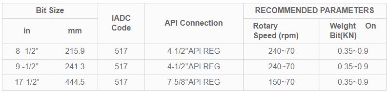 Motor hardfacing: Tungsten carbide particle hardfacing is applied liberally along the shirttail and extended up the leading edge of the bit leg for additional protection in high-speed, directional or abrasive applications. Six-point Gauge Stability: The design delivers near six-point contact with the borehole wall for unequalled bit stability that protects the cutting structure from damaging lateral blows. G-Gauge protection: more tungsten carbide inserts are placed in the gauge to reduce the wear in the abrasive formation. It can protect gauge and increases the stability and life of the bit. Cutter: premium carbide teeth having increased resistance to breaking and abrasion , maximum increase cutting structure operating life. Nozzle:These nozzles are much sturdier and provide greater flow capacity and maximize fluid distribution to the cones.