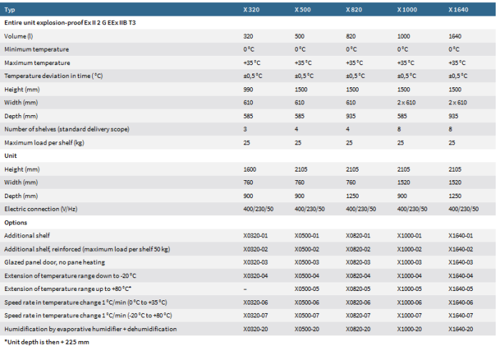 The units are suitable for storage and tests of material of the temperature classes T1, T2 and T3 of explosion group IIA and IIB.