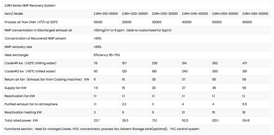 • NMP solvent recovery rate ≥ 97%, solvent recovery concentration ≥ 85%, exhaust NMP concentration ≤ 1ppm