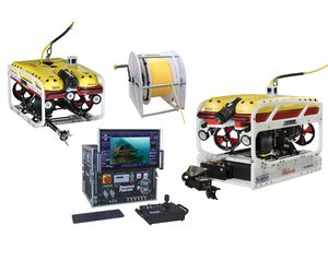 - Standard (300m) or deep-rated (1000m) ROV fitted with five thrusters, vehicle junction box, two LED lights, high resolution colour camera and a navigation pod providing vehicle auto depth and auto heading.