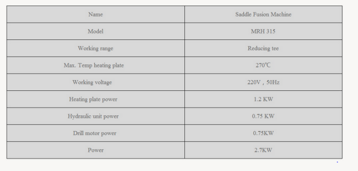 Suitable for fabricating PE reducing tee in a workshop. Integrated function of welding and taping enables it can complete the whole fabricating process. Removable PTFE coated heating mould. Separate two-channel timer records times in soaking and cooling phases. Digital high-accurate pressure meter indicates clearer readings. Linear guide ways are equipped with main pipe clamps, branch pipe clamps, knife tool and heat mould.