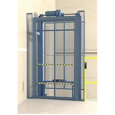 If lift service is to the edge of a mezzanine or balcony, only minimal enclosures are required because the equipment is guarded by location.