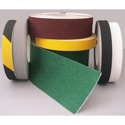 Anti-slip (non-skid) abrasive floor grip tape for areas that get wet or otherwise contaminated. Helps make any floor or stair anti-skid and non-slip. Easy to apply: peel-off adhesive backing with strong glue. Our anti-slip abrasive floor grip tape is built to last for any indoor or outdoor use. The abrasive is durable aluminum oxide. Helps assure ADA and OSHA compliance for anti-skid floors, ramps, stairs, and any other slippery situation. Our anti-skid tape helps make any floor or tub more slip resistant. Our anti-slip tape comes in a variety of colors and sizes.
