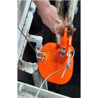 In the case of flooded or deep wells with no visibility, the Lifter can be attached to a guide wire by a shackle that runs down to a guide hole incorporated into the Link on top of the pump, guiding the Lifter effortlessly to the Link, making the SAFELIFTER 100% effective in all situations.
