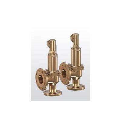 Safety valves made of gunmetal, angle-type with flange connections. This safety valve range is also completely made of corrosion-resistant materials. The body is made of gunmetal and the stainless steel spring and internal parts, which are made of stainless steel, are hard to beat in terms of corrosion-resistance, especially when confronted with agressive watery solutions, salt water or a saline atmosphere. The best possible version is available for virtually every application imaginable, whether this requires metal to metal sealing to meet highest tightness requirements or a metal supported o-ring seal made of a variety of materials or even back-pressure compensating gastight metal bellows or a gastight spring housing.