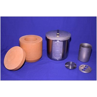 The SAFPAK consists of an Outer Container Drum (Design No 2767) which carries a resealable Inner Container (Design No 2775) within insulating and shock absorbing cork packing. The Outer Container Drum has a pressed stainless steel body with a bayonet closing action stainless steel lid. The Inner Container is a resealable stainless steel containment vessel. Cavity: 84mm x 121mm.