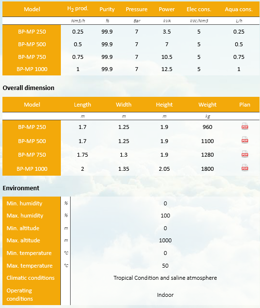 The hydrogen generator BPMP is specifically designed use for the inflation of the balloons in the upper air stations in meteorology. Simple and reliable, it can operate whatever the climatic and environmental conditions. It is able to supports high fluctuations as well as sudden interruptions of the power supply. In case of prolonged mains failure, the generator will stay in stand-by and then will restart automatically without any assistance. It is also equipped of a water treatment system with a sufficient DI water reserve for producing hydrogen during one week in case of lack of the water supply.