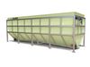 The internal part of the equipment or tank is manufactured in GFRP and the external is in carbon steel with protection against corrosion, although it can also be manufactured in stainless steel AISI 304 or AISI 316. The lamellar set is made of PVC with a 60º slope. The equipment also has a top collection dump for the collection of clarified water, an inlet, outlet and overflow with flanged outlet and a ball valve installed in the outlet.