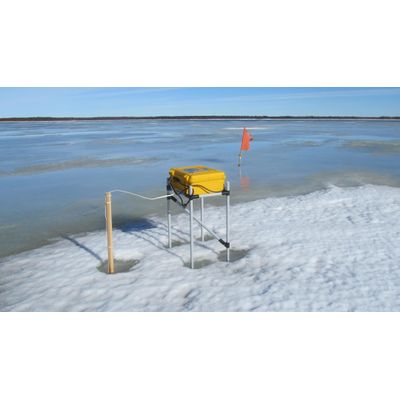 Originally designed for monitoring Polar sea-ice, SIMBA (Snow Ice Mass Balance Array) units comprise an autonomous platform and a chain of digital temperature chip sensors. The devices capture unique data that are not available through Satellite or other means. The instrument is compact and easy to deploy via a 5cm auger hole. A standard SIMBA chain is capable of providing a temperature profile across 4.8m of length, with temperature readings made every 2cm accurate to +/- 0.0625°C (other lengths available). The units also incorporate data telemetry (via Iridium SBD), have in-built GPS for tracking sea-ice movement, a magnetometer for tilt and floe rotation, and a barometer for surface air pressure. An internal and external sensor can also be provided for local ambient air temperature readings and pelicase temperature.