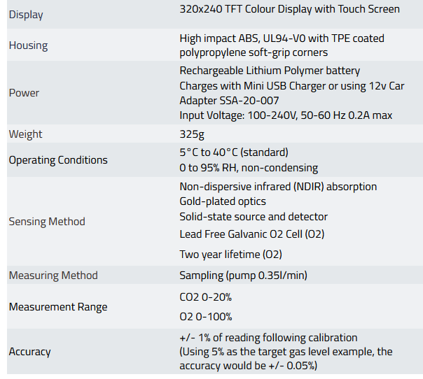 - O2 0 - 100% measurement range