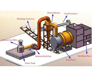 The sand dryer is mainly composed of three-layer cylinder, induced draft fan, high-speed dispersing device, lifting plate, self cleaning device, transmission device, conveying equipment, hot air equipment, reducer, support device and sealing device.