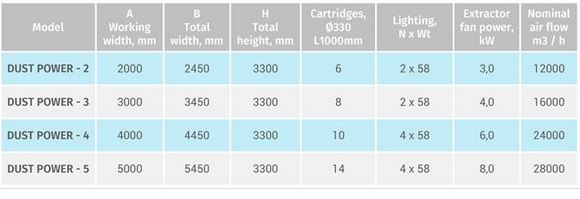 The dust suction booth Dust Power is indicated for the suctioning and removal of dust from sanding and it is built with galvanized press-folded sheet iron. The main feature of Dust Power is the filtration of dust through aluminized polyester antistatic cartridges. The booth Dust Power is equipped with timed self cleaning system of the cartridges with jets of compressed air. The dust jets are deposited in removable trays.
