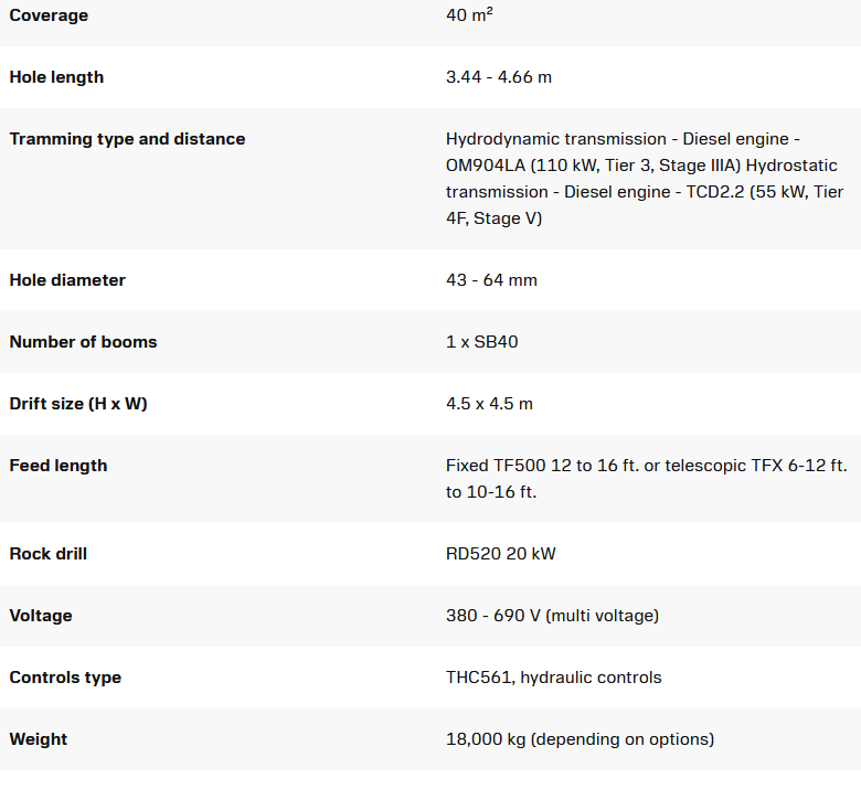 The SB40 boom series offers large optimum-shaped coverage and full automatic parallelism. The boom can also be used for cross-cutting and bolthole drilling.