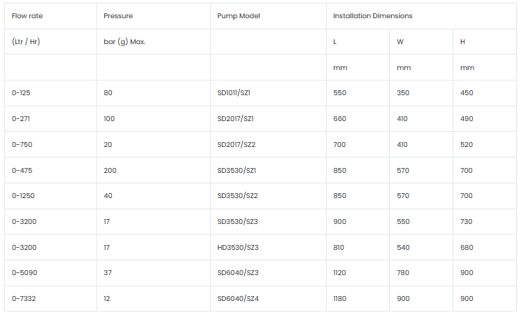 Performance conforms to API 675. Glandless design and entirely Leak Proof operation. Integrated Pressure Relief Valve. Rupture indication arrangement (RIA)is an additional facility available with these pumps. These pumps with RIA are provided with sandwich of two diaphragms. The rupture of any one of the diaphragm can be sensed by pressure sensing device. Automatic air bleeding from the hydraulic oil ensures better metering accuracy. Manual stroke variation mechanism.