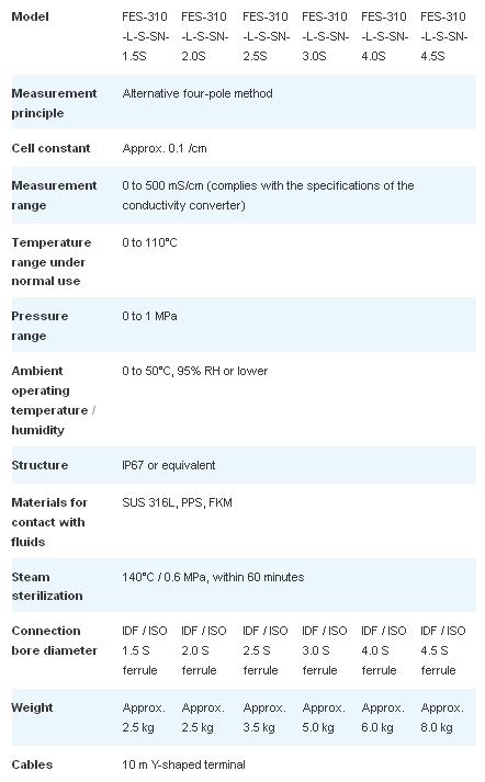 Since this flow-through type sensor has no internal protuberances, fluid flows through the sensor with exactly the same inside diameter as the pipe, thus helping reduce fluid retention and ensuring that CIP chemical fluid is drained completely, which results in higher cleaning performance. The FES-310L Series sanitary conductivity sensors, which are used in conjunction with the HE-960HS conductivity converter, deliver improved yields and accurate CIP terminal management.