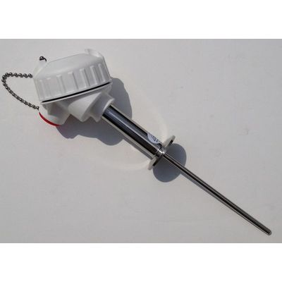Sanitary Temperature Measurement Applications in the Food, Dairy, Beverage, Pharmaceutical & Chemical Industries. CIP (Clean in Place) Sanitary Connections standard. Stainless Steel Sheath, sanitary cap & nipple 3" long. FDA White Polypropylene Heads resist harsh wash down chemicals. Precision Platinum Resistance Element features accuracy & long term stability of readings. 16AMP Sanitary Cap (Tri-Clover) is standard. Other cap styles available. All critical components & welds highly polished to resist contamination.
