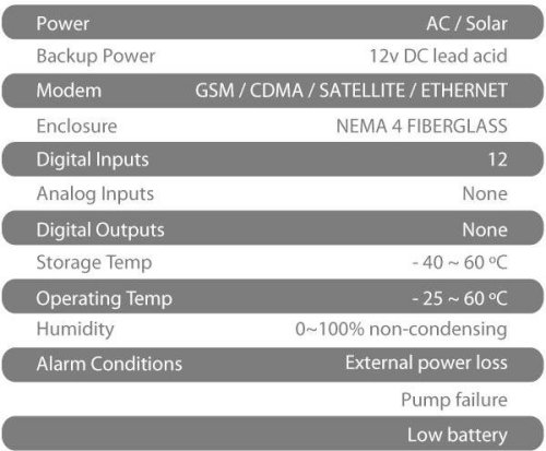 Sanitary Sewer Lift Stations will normally utilize the HTT-900 which provides 12 digital inputs housed in a 10 x 8 NEMA 4 enclosure. The unit can monitor starts, run-times and all alarm inputs. It will also provide notification of power failures without the use of an input. It can also interface with pulse output flow meters and a tipping bucket rain gauge.