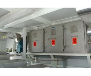 4. Air from the infeed hopper is drawn by a fan through a series of filters including a High Efficiency Particulate Air (HEPA) filter and a carbon filter to control odors. Air tests performed on the system confirm that no harmful air emissions are released during waste processing.