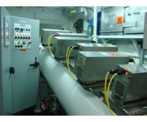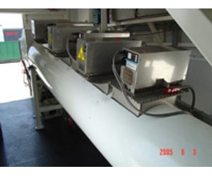 5. Waste is then picked up by a stainless steel screw conveyor, moistened with steam, and passed by a series of microwave units. Microwave energy is extremely efficient at thermally treating each individual waste particle from the inside out, assuring thorough disinfection. Treatment is verified on a regular basis by challenge testing using spores of bacillus subtilis (var. niger).