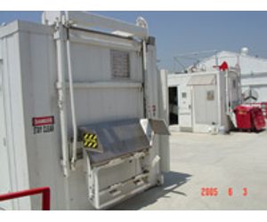 6. Treated waste is then transported outside the unit by a secondary screw conveyor and is deposited into a wastecompactor or dumpster. At this point, waste is considered safe for disposal in any municipal solid waste program. An optional granulator is available for further waste reduction if