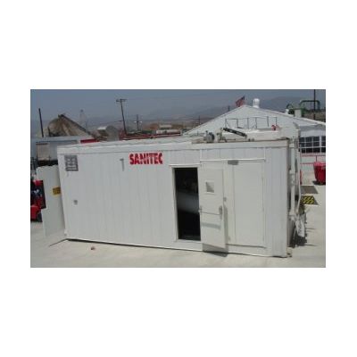 1. Sanitec units are delivered housed in an all-weather steel enclosure. Systems can be installed either inside or outdoors, and require only a standard 480 electric line and standard water hookups for the onboard steam generator. There is no drain required because there is no water emission. Installation generally is complete within two days, and units can be easily relocated to accommodate changing space requirements.