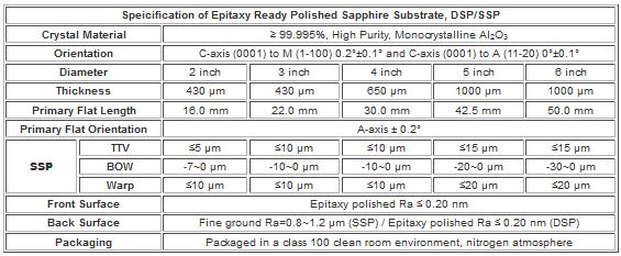Sapphire is a material of a unique combination of physical, chemical and optical properties, which make it resistant to high temperature, thermal shock, water and sand erosion, and scratching. It is a superior window material for many IR applications from 3µm to 5µm. C-plane sapphire substrates are widely used to grow III-V and II-VI compounds such as GaN for blue LED and laser diodes, while R-plane sapphire substrates are used for the hetero-epitaxial deposition of silicon for microelectronic IC applications.