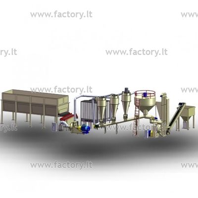 Hammer mill (with stone catcher) is intended to make wood chips, shavings, sawdust fraction equal and not bigger than 1-3mm size. Grinded sawdust is blewn to primary cyclone-settler. If after screener there are any stones left - they are cought in stone catcher.