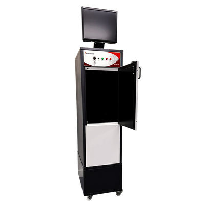 Scanmax 25 mailroom x-ray machine is a compact floorstanding unit on wheels and a similar size to a 4 drawer filing cabinet. Scanmax 25 has a generous screening chamber making ideal for with security x-ray screening of trays of mail, padded bags, parcels, archive boxes, briefcases and backpacks.
