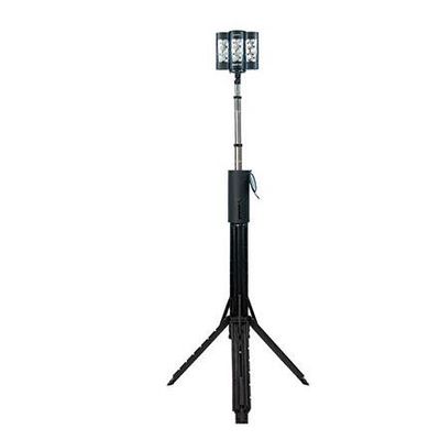 In around 20 seconds, you’ll be able to deploy the tripod legs and raise the telescoping head up over 8 ft tall to illuminate the work area.