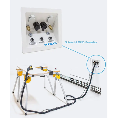 The dust is extracted on the ground in the longitudinal direction. The measured values prove that even blasting the workpieces does not cause a high dust load for the employees. It is therefore possible to blast the workpieces and clean the booth using a Scheuch LIGNO system. A sophisticated air supply system on the ceiling keeps the dust on the ground. A simple drawer system enables the dust to be disposed of quickly. A grinding booth reduces dust and noise considerably.