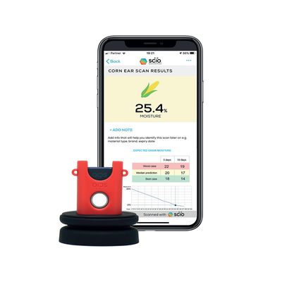 SCiO is a hand-held analyzer for measuring the moisture content of corn on the cob, in the field, in seconds, without having to shell. Seed producers, agronomists, and farmers can simply scan an ear of corn for fast, accurate analysis supporting moisture levels of 8%-80%.