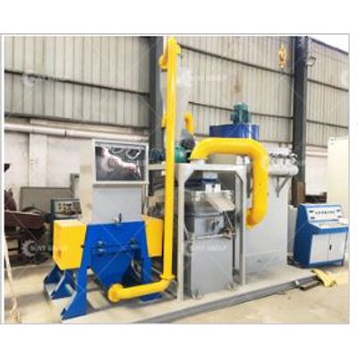 Through shredding, crushing, vibration screening, {the incompletely separated metal and nonmetal will reentry into the crushing machine and be crushed again) gravity separating, electrostatic separating and pulse dust collecting, the separation rate of the copper and plastic will reach about 99% , eventually get metal and non-metallic collective.