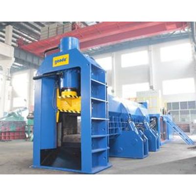 The HBS-500 scrap metal baling shear is used for compression, baling and shearing of various light and thin steel scrap, or used for direct compression and baling of the waste materials. The scrap metal baling shear is ideal for the processing of loose scrap, white ware or auto bodies. The shear baler with 500ton cutting force is fully equipped with automatic shearing, baling ejection cycle, and remote control. Our customers can also choose from stationary or mobile models. The shear baler with 500ton cutting force is strong and fast. This shearing machine is suited to process large quantities of material.