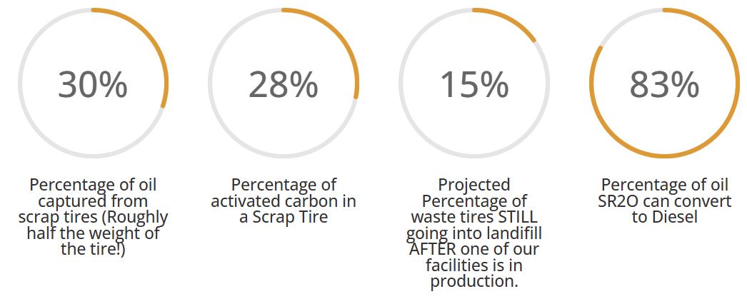 Scrap Rubber to Oil’s (SR2O) facilities and our technology offer an environmentally friendly method to recycle scrap tires with very attractive economic returns.