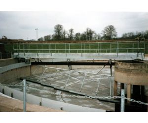 a fixed bridge mounted on the walls of the tank. A central drive unit rotates the scraping mechanism around the tank, the sludge scraping blades diverting the sludge to a hopper while a side wall scraper can also be fitted to ensure the base of the internal wall is scraped. The scum blade diverts the scum to the outer wall of the tank where it is collected into a scum box once every revolution of the scraper mechanism.