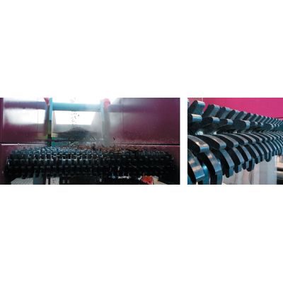 The innovative geometry of the discs is that one finger is longer than the others so that it keeps the previous and the following shaft clean while rotating.