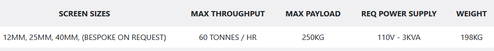 With locking, easily interchangeable screens (ranging from 6mm -50mm), you can select what works for your job and have it set up in minutes.