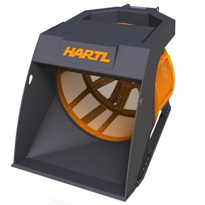 The bucket screener developed by HARTL is a quality, robust screen drum that has been ingeniously fitted to an excavator bucket.