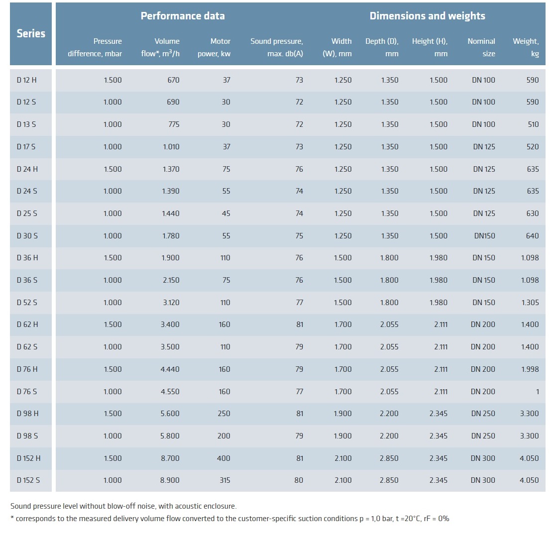The Delta Hybrid is used in a wide range of key industrial applications. These units are designed for the oil-free conveyance of air and neutral gases. For positive and negative pressure use in nominal widths from DN 100 to DN 300.