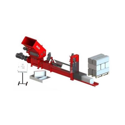 The EPS is pre-crushed in the hopper and the screw and the automatic hydraulic jaws compact the EPS to solid and uniform blocks. The density and size of the EPS is crucial for the choice of pre-crusher. The machine can be fed manually into a 45° hopper or by conveyor belt into a vertical hopper. The different incorporated sensors ensures easy operation with the automatic start and stop function and adjustable speed. Twin models with two or three screw compactors ensure high efficiency. It is also possible to place the compactor below a silo and buy automatic block divider and crane for handling the compacted blocks.