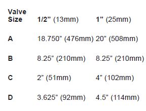 3/8" (10mm) Dimensions same as above except for threaded pipe connections. 3/4" (19mm) Dimensions same as above except for threaded pipe connections.